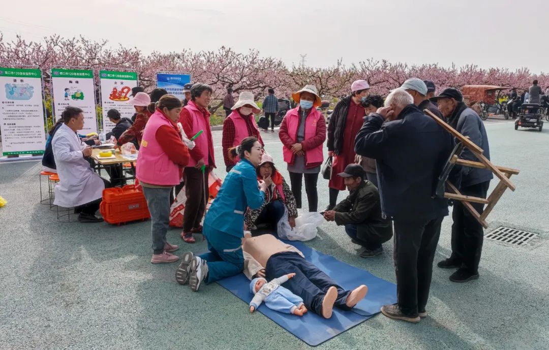 日前,河南省西华县举行第十九届桃花节盛大开幕,来自全国各地的游客会聚西华县黄桥乡,共赏桃花美,共叙桃花缘。周口市卫生健康委员会、周口市120指挥中心、西华县120指挥中心为更好地满足人民群众对院前医疗急救需求,普及全民急救知识,于3月25、26日,抽调周口淮海医院紧急医学救援队队员走进西华县黄桥乡桃花节,为群众开展的急诊急救知识普及工作。