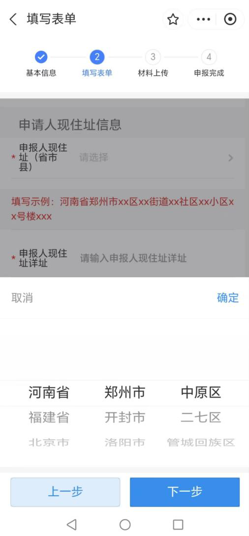选择您所在的省、市、县,并输入详细地址。