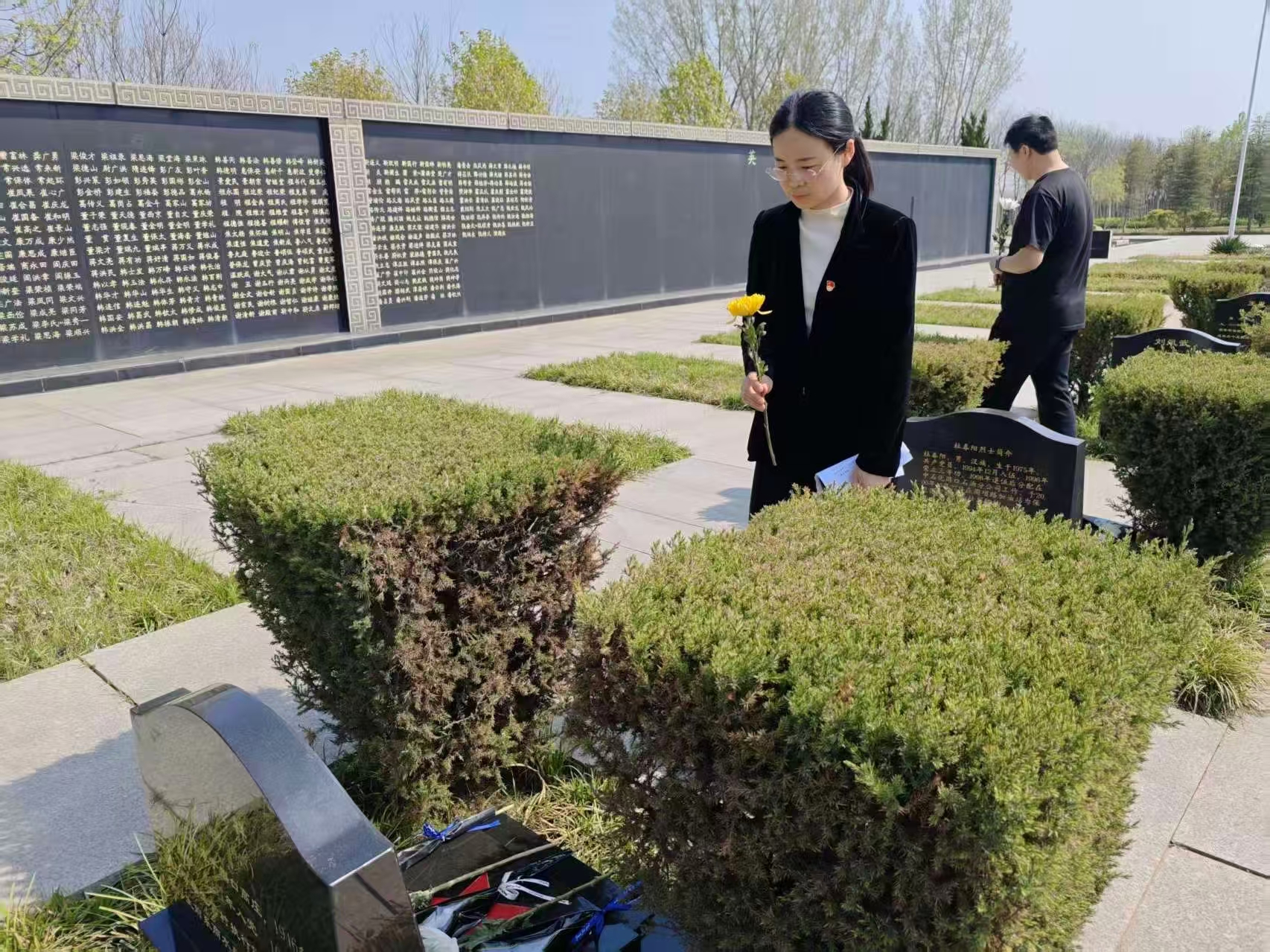 仪式环节结束后,全体人员缓步移步烈士陵墓区,向烈士墓碑敬献鲜花,瞻仰烈士陵墓,认真学习英烈英雄事迹,感悟革命先烈舍生取义的家国情怀与无私奉献的崇高品格。