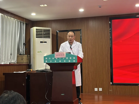 参训学员代表桑跃东郑重表态,将倍加珍惜此次宝贵学习机会,严格遵守培训纪律,潜心钻研业务知识,苦练服务本领。培训期间,将认真听讲、深入研讨、勤练技能,把所学知识与技能带回工作岗位,转化为服务群众的实际能力,以更专业的素养、更贴心的服务、更饱满的热情,为辖区居民提供预防、保健、医疗、康复、健康教育等全方位、全周期的优质健康服务,不辜负组织信任与群众期盼。